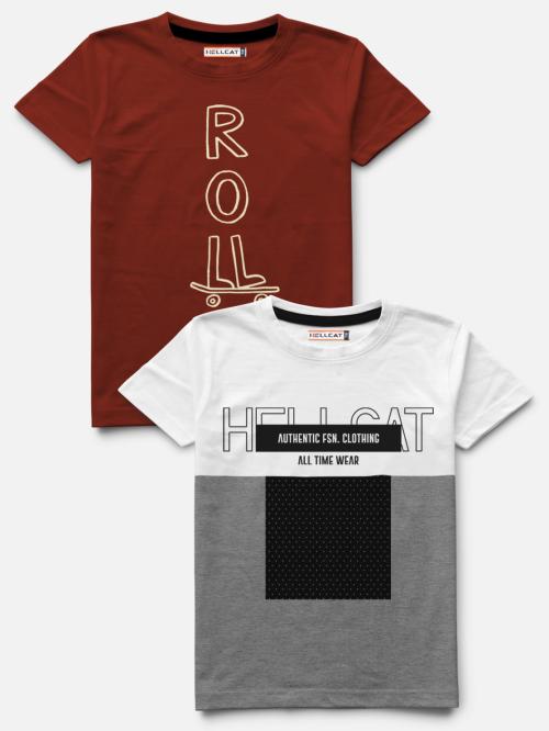 HELLCAT Boys Multicolor Cotton Blend Printed Pack of 2 T-shirt | kids wear | t shirt for kids | t shirt for boys | t shirt | tshirt | tshirt boys | boys tshirt | boys t tshirts | boys dress | tshirts | t shirts