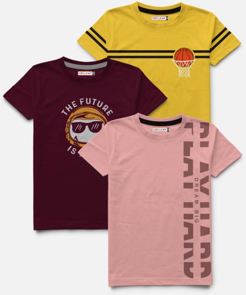 HELLCAT Boys Multicolor Cotton Blend Printed Pack of 3 T-shirt | kids wear | t shirt for kids | t shirt for boys | t shirt | tshirt | tshirt boys | boys tshirt | boys t tshirts | boys dress | tshirts | t shirts