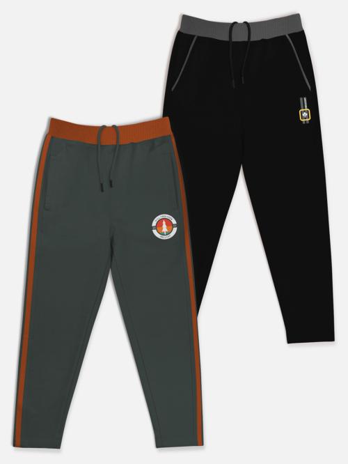 HELLCAT Multicolor Boys Cotton Blend Solid Pack of 2 Fitted Track Pants