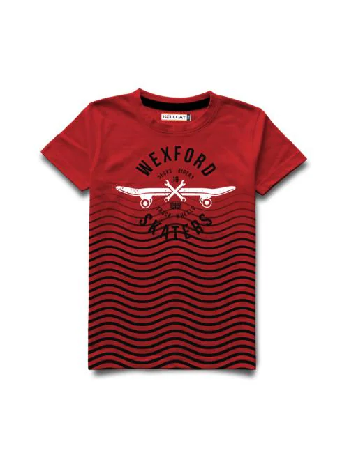 HELLCAT Red Trendy Printed Round Neck Half Sleeve Tshirt For Boys | kids wear | t shirt for kids | t shirt for boys | t shirt | tshirt | tshirt boys | boys tshirt | boys t tshirts | boys dress | tshirts | t shirts