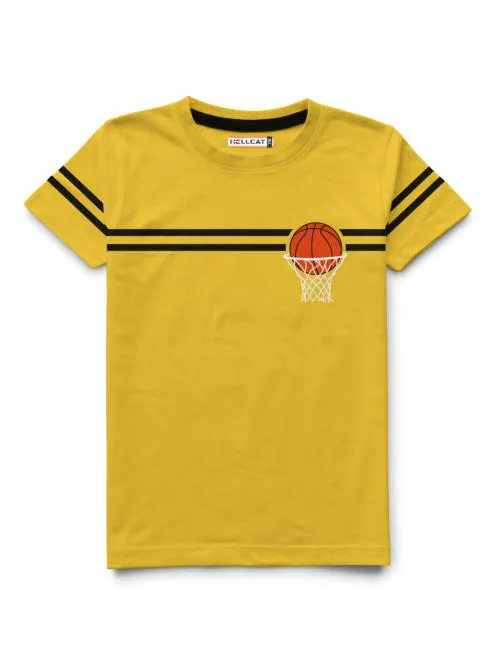HELLCAT Yellow Trendy Printed Round Neck Half Sleeve Tshirt For Boys | kids wear | t shirt for kids | t shirt for boys | t shirt | tshirt | tshirt boys | boys tshirt | boys t tshirts | boys dress | tshirts | t shirts