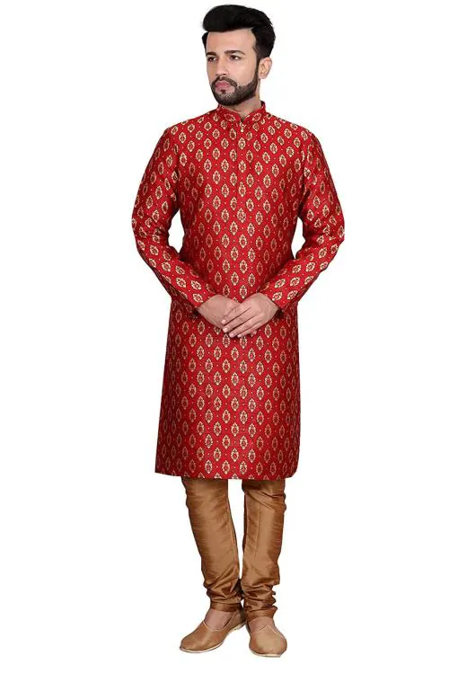 HEORA Mens Maroon Silk Blend Kurta Pyjama Set for Ethnic and Designer Wear