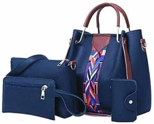 Hercraft Handbag For Women. Combo Of Set Of 4 Bags(1 Main Handbag, 1 Sling Bag, 1 Sider Bag And 1 Card Holder) Blue