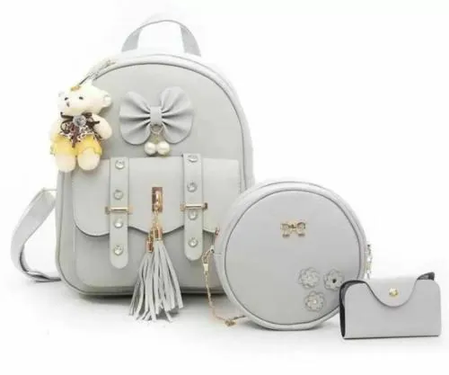 HERCRAFT Women's PU Leather Stylish and Trending Backpack for College Office Travel Purse. Grey
