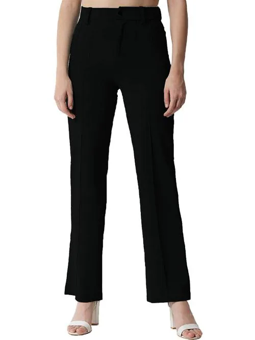 HERMOSA Women Solid Polyester & Cotton Blend Black Trouser