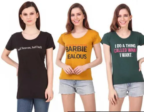 High Seas Women Multicolor Printed Cotton Blend Round Neck T-Shirt - M (pack of 3)