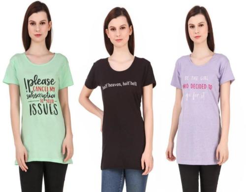 High Seas Women Multicolor Printed Cotton Blend Round Neck T-Shirts - L (pack of 3)