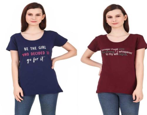 High Seas Women Multicolor Printed Cotton Blend Round Neck T-Shirts - XL (pack of 2)