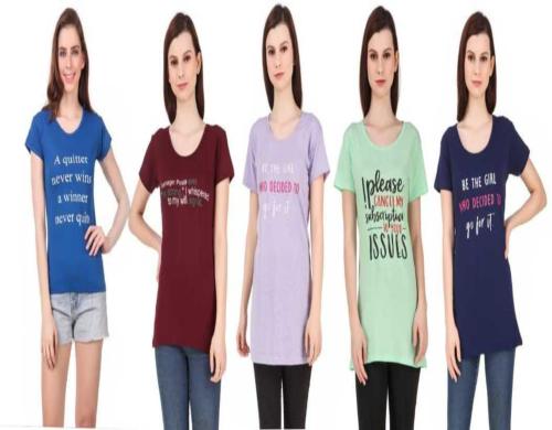 High Seas Women Multicolor Printed Cotton Blend Round Neck T-Shirts - XL (pack of 5)