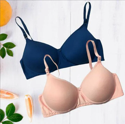 Hothy Women Multicolor Cotton Blend Pack Of 2 Lightly Padded Bra (32)