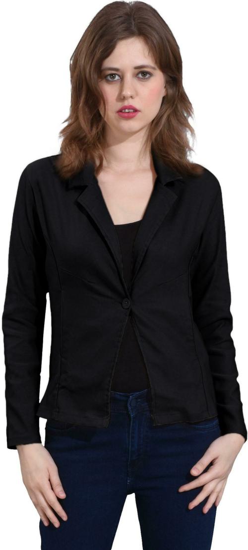 HRIKSHIKA FASHION Women Black Solid Cotton Blend Blazer