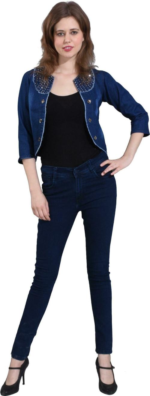 Hrikshika Fashion Women Dark Blue Embellished Cotton Lycra Blend Shrug