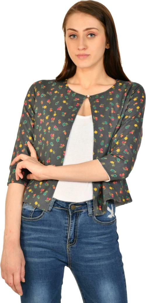 Hrikshika Fashion Women Grey Floral Print Denim Shrug