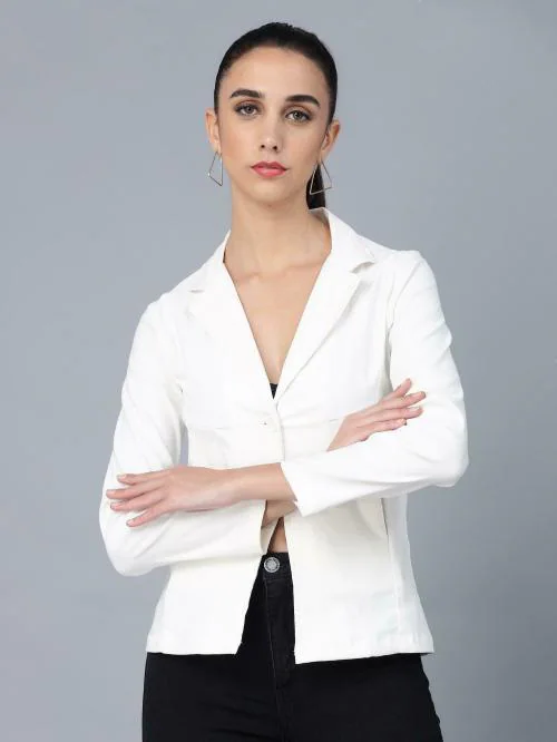 HRIKSHIKA FASHION Women White Solid Cotton Blend Blazer
