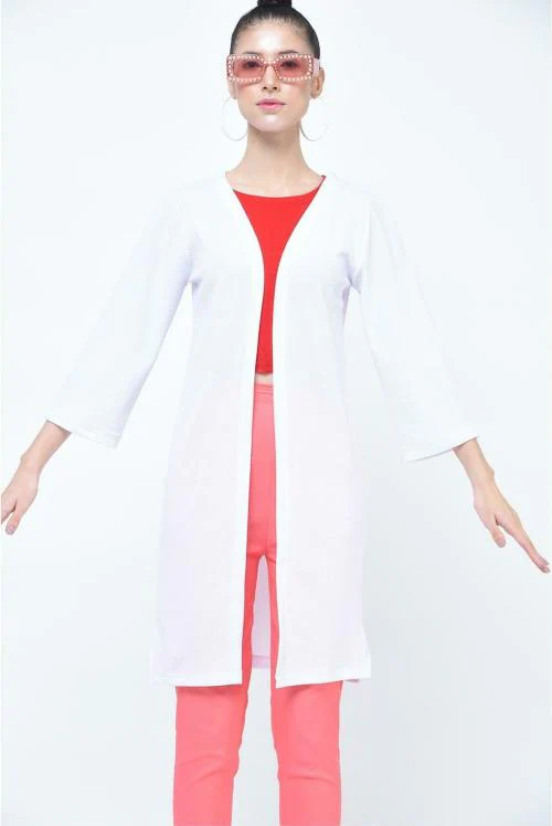 Hrikshika Fashion Women White Solid Cotton Lycra Blend Shrug