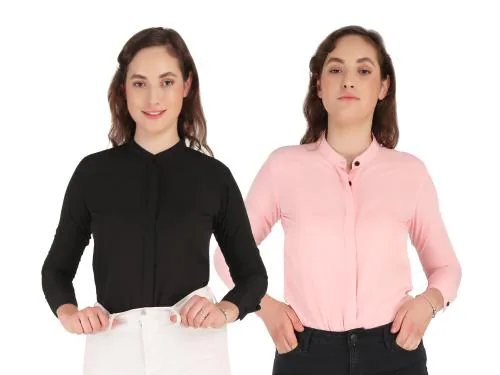 Hunoor Formal Women and Girls Shirts Black and Pink Size Pack of 2