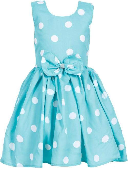 HUNOOR Girls Sky Blue Polka Print Crepe, Cotton Linen A- Line Dress