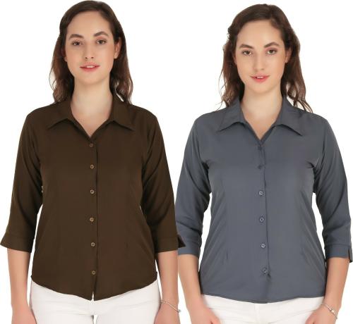 Hunoor Womens Dark Mehandi Solid Crepe Pack of 2 Casual Shirt l women shirt l casual shirt for women