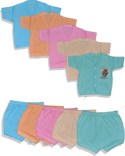 HUXX Baby Boys and Baby Girls Multicolor Printed Pure Cotton Top and Bottom - 0 to 6 M (Pack of 5) (NO4 INT PLN)