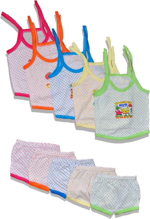 HUXX Baby Boys and Baby Girls Multicolor Pure Cotton Vests and Short - 0 to 6 M (Pack of 5) (NO1 W DOT)