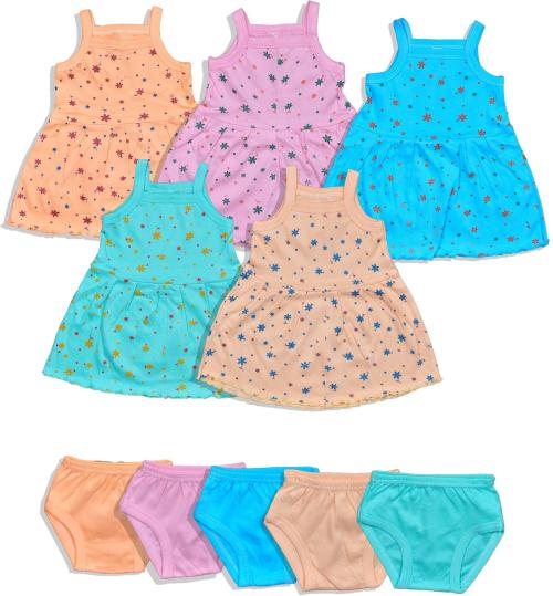 HUXX Baby Girls Multicolor Graphic Print Pure Cotton Top and Bottom - 0 to 6 M (Pack of 5) (NO12 INT)