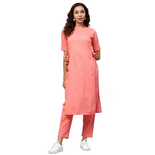 Idalia Peach Straight Kurta With Pants