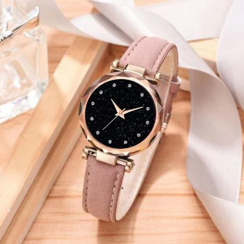 ILOZ Cut Glass Pink Leather Strap ladies Analog Girls Watch Analog Watch - For Women New Collection Stylish Latest Designer Black Fashion wrist watch women Analog Watch - For Women