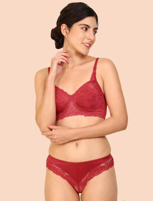 In-Curve -Women Cotton Bra Panty Set for Lingerie Set ( Pack of 1 ) ( Color : Red )