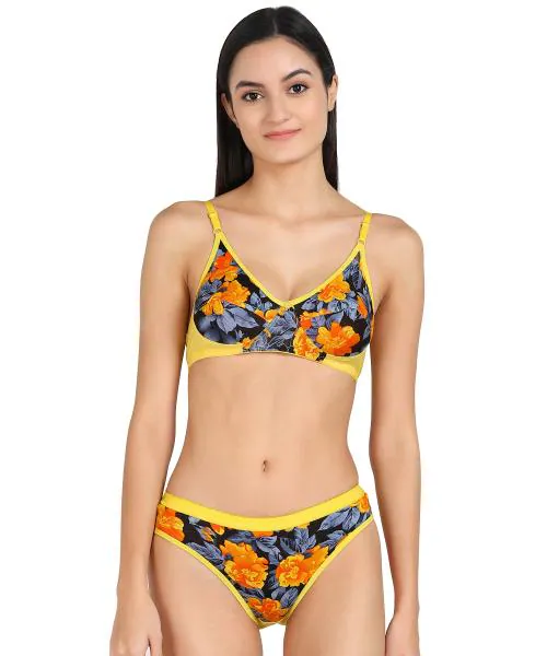 In-Curve -Women Cotton Bra Panty Set for Lingerie Set ( Pack of 1 ) ( Color : Yellow ) ( Pattern : Self Design )