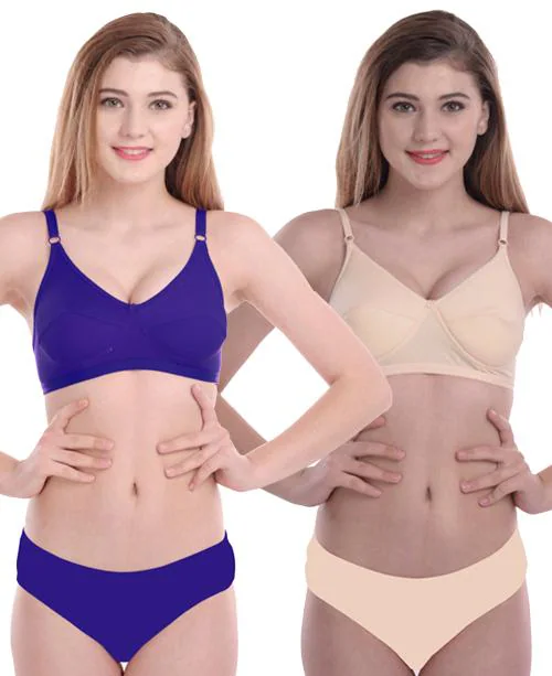 In-Curve -Women Cotton Bra Panty Set for Lingerie Set ( Pack of 2 ) ( Color : Blue,Gold )