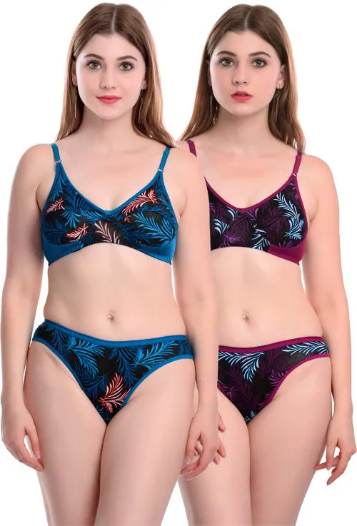 In-Curve -Women Cotton Bra Panty Set for Lingerie Set ( Pack of 2 ) ( Color : Blue,Maroon )