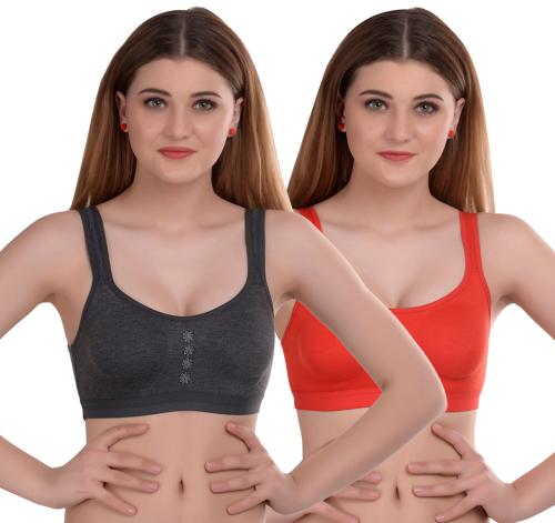 In-Curve - Women Cotton Non Padded Non-Wired Bra ( Pack of 2 ) ( Color : Grey,Red ) @PID-A_Guchi Bra_Grey,Red
