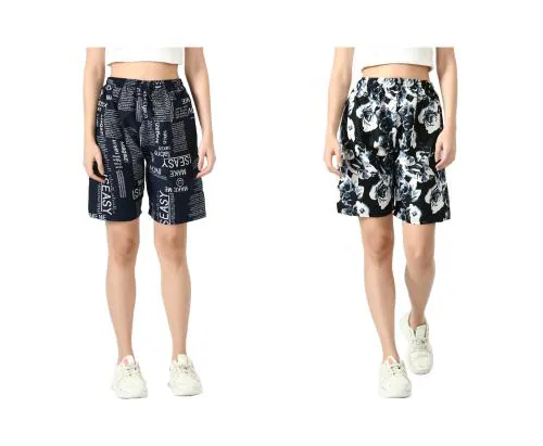 IndiWeaves Crepe Digital Floral Printed Shorts for Women [Pack of 2]