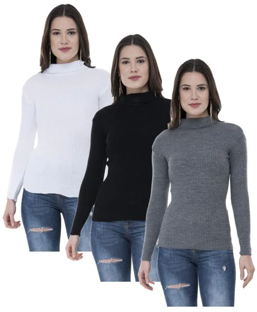 IndiWeaves Women Woollen Warm Full Sleeves High Neck Skivvy (Pack of 3) Multicolor