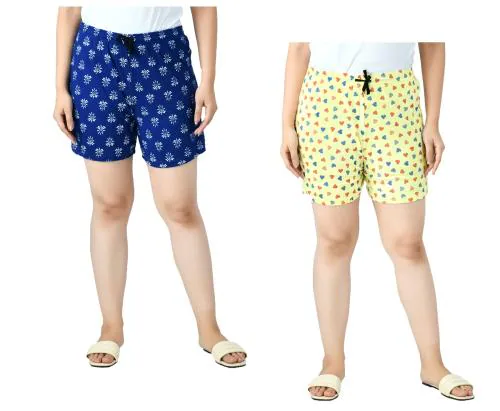 IndiWeaves Womens Cotton Printed Hot Pants/Shorts (Pack of 2) Multicolor