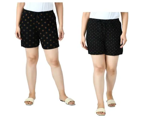 IndiWeaves Womens Cotton Printed Hot Pants/Shorts (Pack of 2) Multicolor