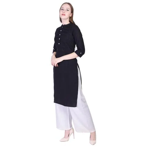 Indiwest Textiles Women's Cotton Solid Straight Black Kurti