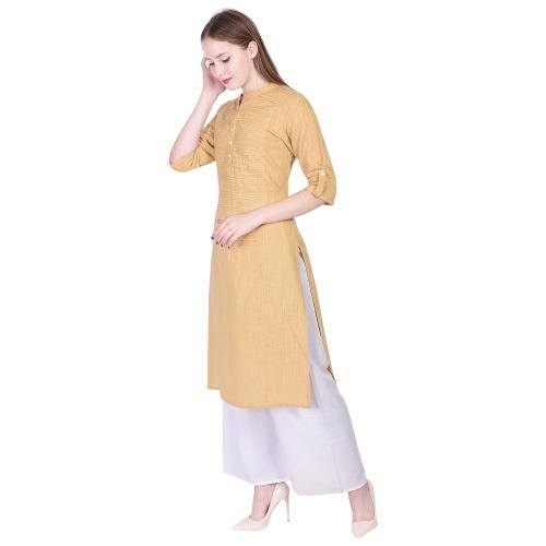 Indiwest Textiles Women's Cotton Solid Straight Chikoo beige Kurti
