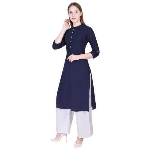 Indiwest Textiles Women's Cotton Solid Straight Navy Blue Kurti