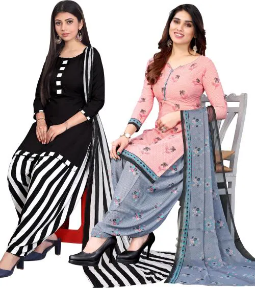 - This iris pack of 2 unstitched dress material have floral print,geometric print work on crepe fabric looks pretty on wedding,festive occasion and party.