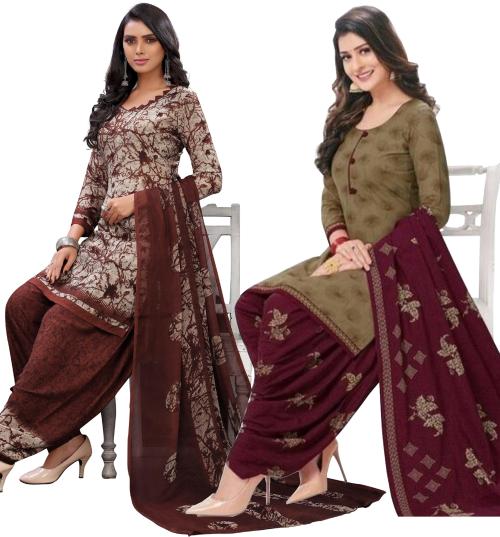 Iris Women Brown, Beige Crepe Printed Unstitched Salwar Suit Material - Cmb_Dm1196