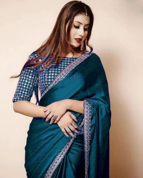 IrisTheStudio Women Light Blue Silk Blend Embroidered Bollywood Saree - Nxika