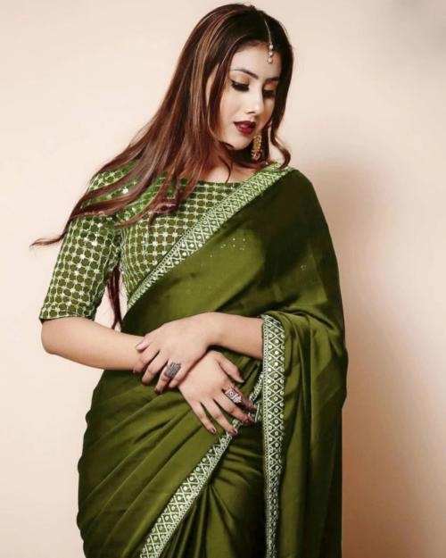 IrisTheStudio Women Light Green Silk Blend Embroidered Bollywood Saree - Nxika