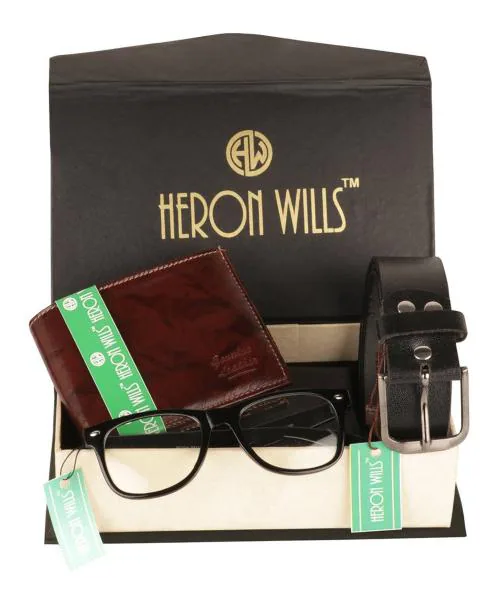 - This combo gift set comes with an elegant formal belt, wallet and sunglasses. Made of exclusive superior quality material. Well designed by skilled handcraft man, durable cloth lining used in wallet designed to accommodate maximum needs
