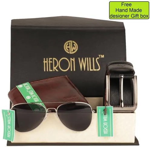 - This combo gift set comes with an elegant formal belt, wallet and sunglasses. Made of exclusive superior quality material. Well designed by skilled handcraft man, durable cloth lining used in wallet designed to accommodate maximum needs
