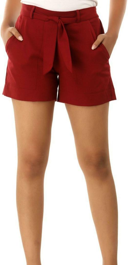 Jaipurivastra Women Maroon Solid Pure Cotton Shorts (L)