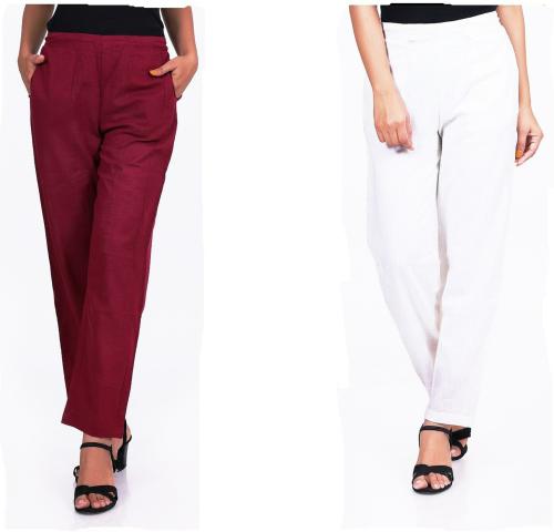 Jaipurivastra Women Maroon Solid Pure Cotton Trouser (M)