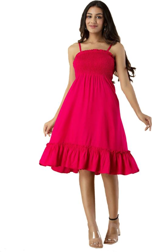 Jaipurivastra Women Pink Solid Rayon Dress (S)