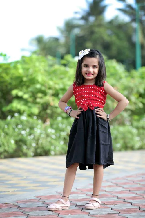 Janmangal creation Girls Red Printed Crepe A-line Dress