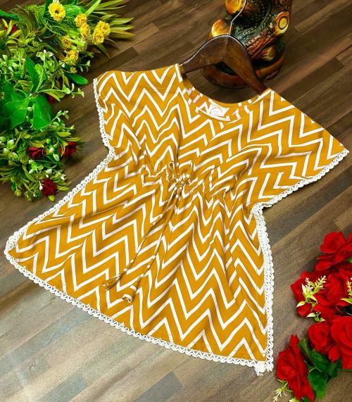 Janmangal creation Girls Yellow Chevrons Crepe Kaftan